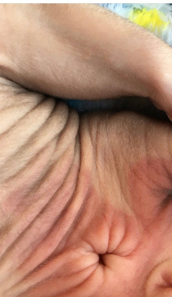 The next stage had me worried about her fur which seemed slow to come through. I wondered if she had been kept in artificial heat for too long. Elsie had the most beautiful pink skin covered in fine grey peach fuzz. But her fur development seemed slow.