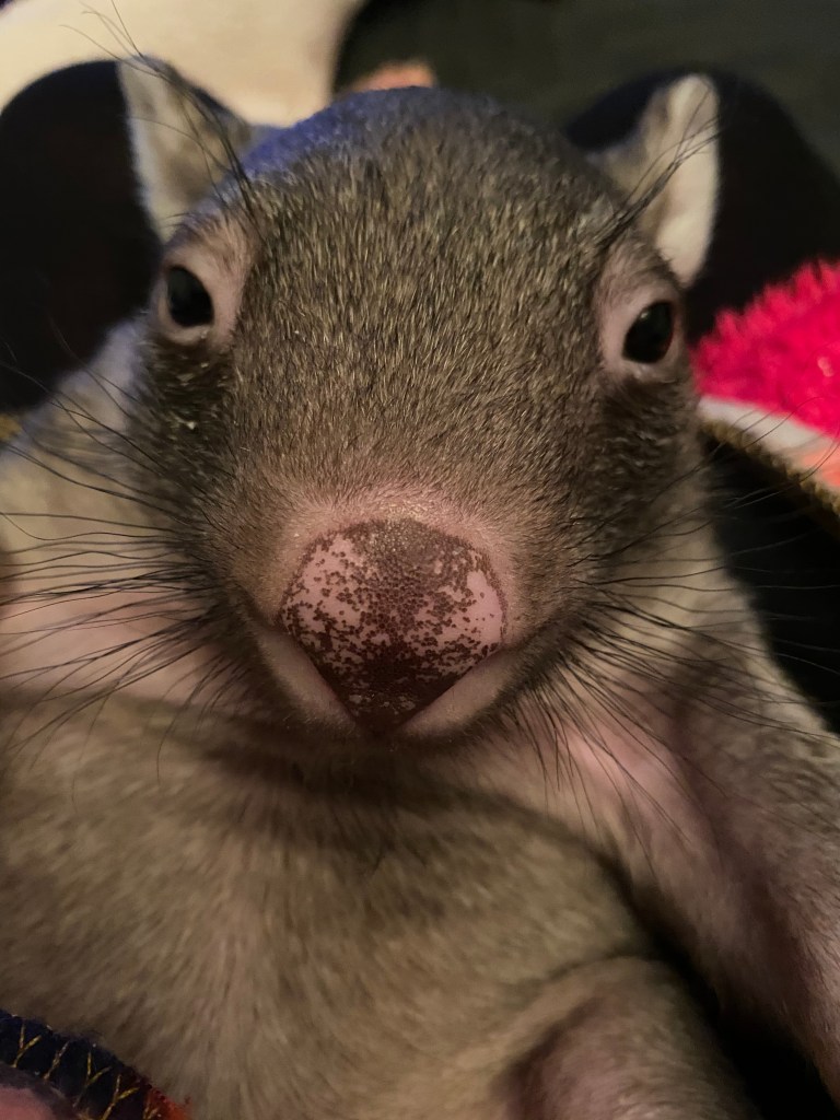 With Elsie in care my life is busy! Until Barney is off night feeds he stays with another carer during the week and comes to me on weekends. Life with two wombat joeys, running a small business and working full time is exhausting! At this age and weight, Elsie no longer requires feeding in the middle of the night. She can now get through 7 hours over night without needing a bottle. She still requires bottle feeds every 5 hours during the day. Barney, however, is younger and on a more frequent bottle feed schedule so back to night feeds when heβs with me on weekends! Just when I was getting used to having decent sleep Im back to feeling exhausted!