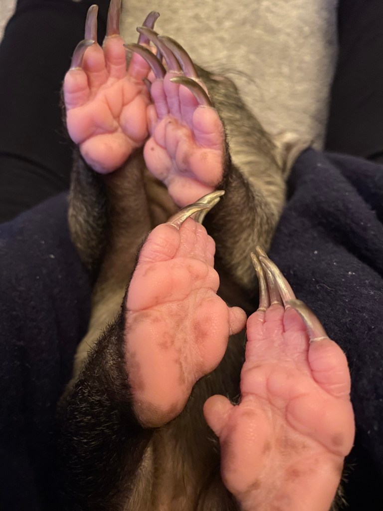At first Elsie was very shy and hesitant around Barney. She has been with me for so long that she knows nothing else. Wombat joeys live closely to mum in the pouch – they hear the grunts of the mum and other body noises, they feel the sensation when mum rolls over, runs, digs or eats. Elsie spent considerable time in a cloth pouch down my top to provide her with the same sensations that she would have otherwise received but she also spent so much time in a humidicrib. Barney, on the other hand, had difficulty transitioning to humans and for a long time was an uptight ball! His feet were bright red – an obvious sign of stress and his little hands clenched tightly into fits. What could I do to help poor Barney destress? What works for you when you are stressed? Stress can effect every part of us and impact our health. The answer, to help Barney – a whole body massage using paw paw ointment! If you have doubts about the positive health benefits of massage – watch this video!