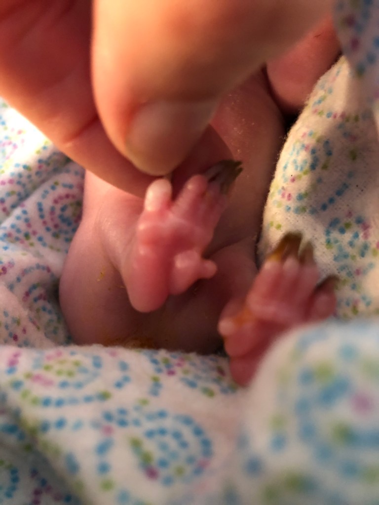 Tiny feet like jelly.