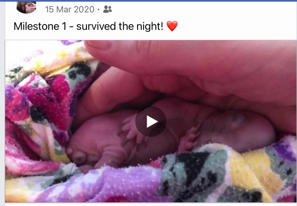 Collapsing into bed that night, knowing I would have to get up again in 2 hours and wondering if she’d still be alive again when I woke up – was emotionally exhausting. But Elsie did survived! She survived the first 24 hours being fed every 2 hours! From then, although there have been problems along the way, she has continued to thrive!
