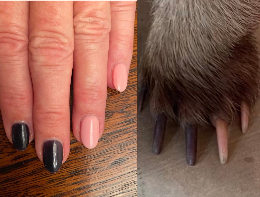 As Elsie grew, her nails stayed the same – 8 black and 2 pink!