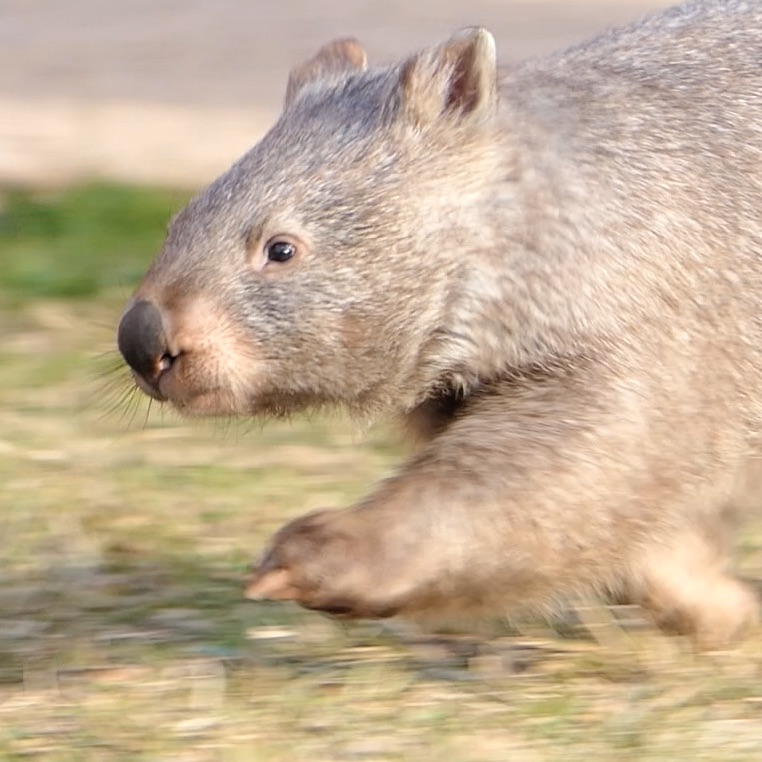 Are wombats vicious or dangerous? This is one question I am asked the most! Like any of us, wombats will protect themselves, their young and their territory. A wombat’s first response is to run for the safety of their burrow! Once they are at the entrance of their burrow they will use their large body to block the entrance to avoid predators following them in. Alternatively, the wombat will poke out their butt (under all that fur, their butt has a cartilage plate) and then they will try to crush the predator’s head between their cartilage covered butt and the roof of the burrow. Sorry I don’t have an image of that!