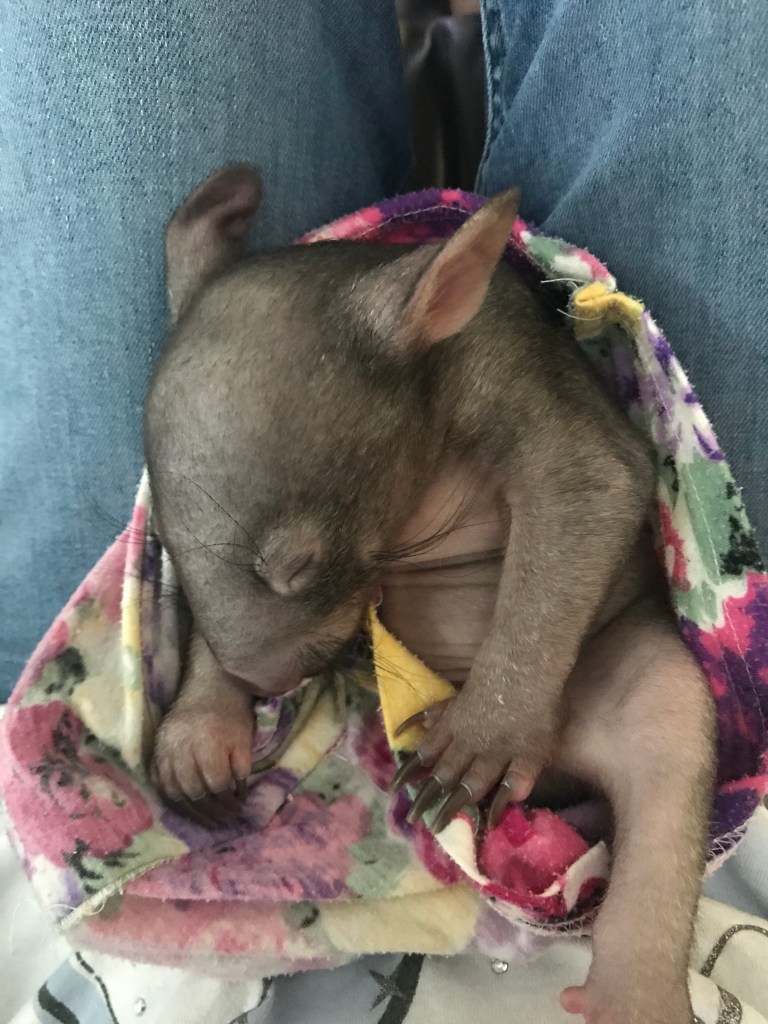 For those readers new to my blog – welcome! Other readers will know the story of Elsie and Barney. But let me re-cap – Elsie arrived weighing just 120 grams – so tiny! She is the tiniest wombat joey I have ever had the privilege to worked with.